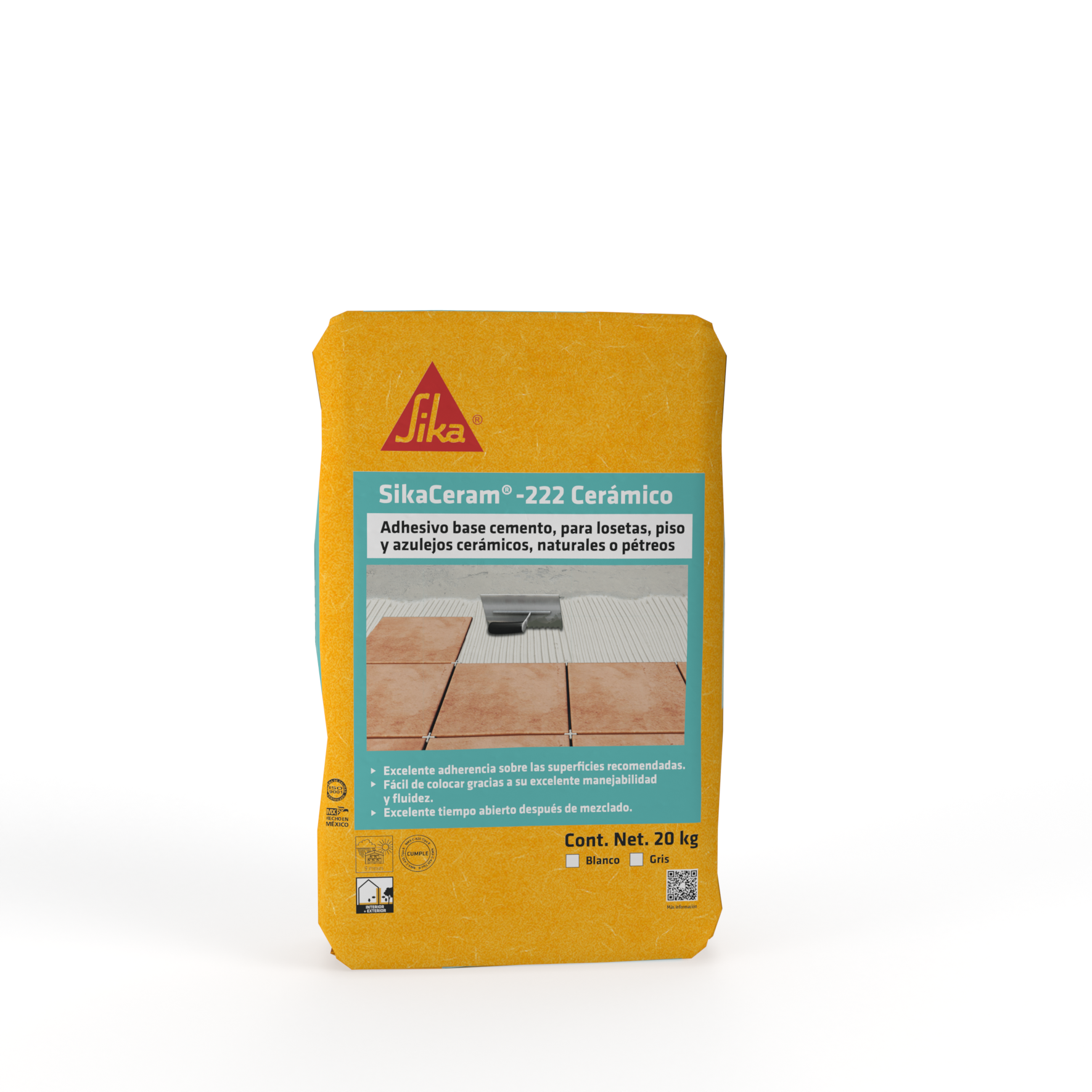 Para instalar piezas de absorción nula como porcelanato (<0.5%), se recomienda utilizar SikaCeram®224 Porcelanato o SikaCeram®256 Flex dependiendo del tamaño y aplicación. SikaCeram®-222 Cerámico Blanco y Gris pueden ser usados tanto para muros como pisos, en cualquier tipo de tráfico para el pegado de los recubrimientos señalados anteriormente. Las superficies sobre las que es idónea la aplicación del SikaCeram® 222 Cerámico son mortero, concreto, estuco, block, ladrillo, siempre que tengan buena nivelación y firmeza. En caso de superficies irregulares se debe nivelar previamente con un material adecuado tipo SikaLevel o SikaScreed. Si es una superficie con mucho movimiento o de altas exigencias consultar con nuestro Departamento Técnico para más información.