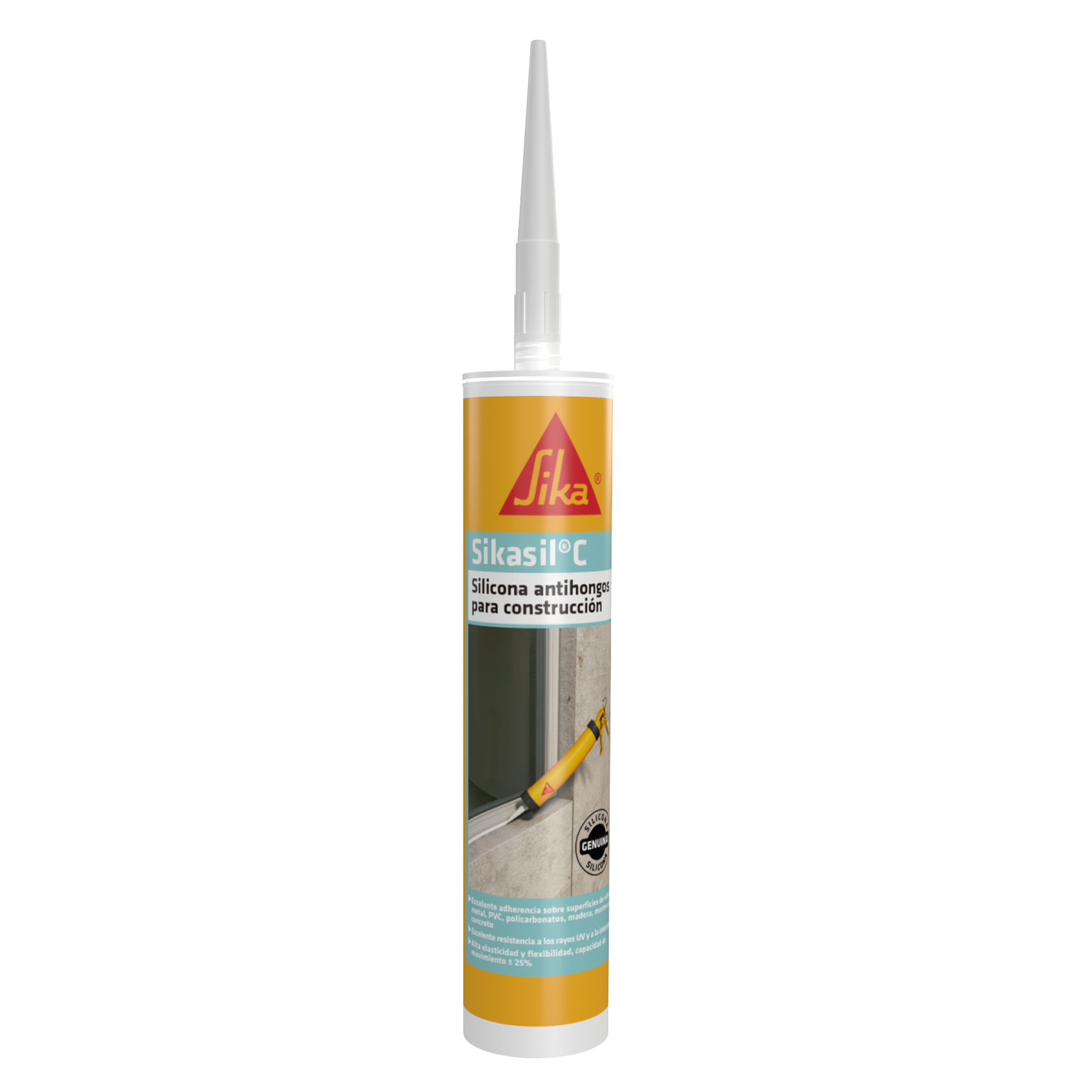 Sikasil® C es un sellador de juntas elástico multipropósito, no corrosivo, de curado neutro de 1- componente para uniones en sistemas vidriados y juntas de conexión. Tiene buena adhesión a la mayoría de los materiales de construcción. Proporciona un sello impermeable elástico y flexible con resistencia a los rayos UV, hongos y moho. Capacidad de movimiento ± 25%. Para uso interno y externo.